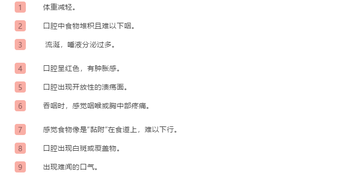 吞咽困難是指患者無法將食物或水通過咽喉下送。當(dāng)努力吞咽時,患者可能會出現(xiàn)嘔吐、咳嗽、流涎或明顯疼痛感。導(dǎo)致吞咽困難的病因有多種,除針對咽喉或胸部放療和化療所產(chǎn)生的短期不良反應(yīng)外,口腔感染(如鵝口瘡)或食道感染也是常見病因。